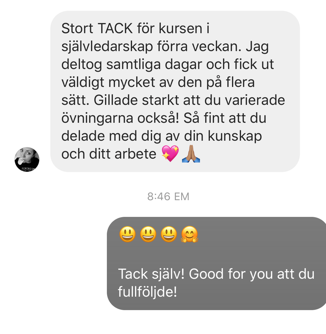 Jag tror genuint på att mår du bra, gör du bra. Genom att du tränar upp ditt självledarskap är du medskapare av en bättre värld. När du tar hand om dig själv kommer du inspirera andra att göra samma sak. Det sprider positiva ringar på vattnet.
