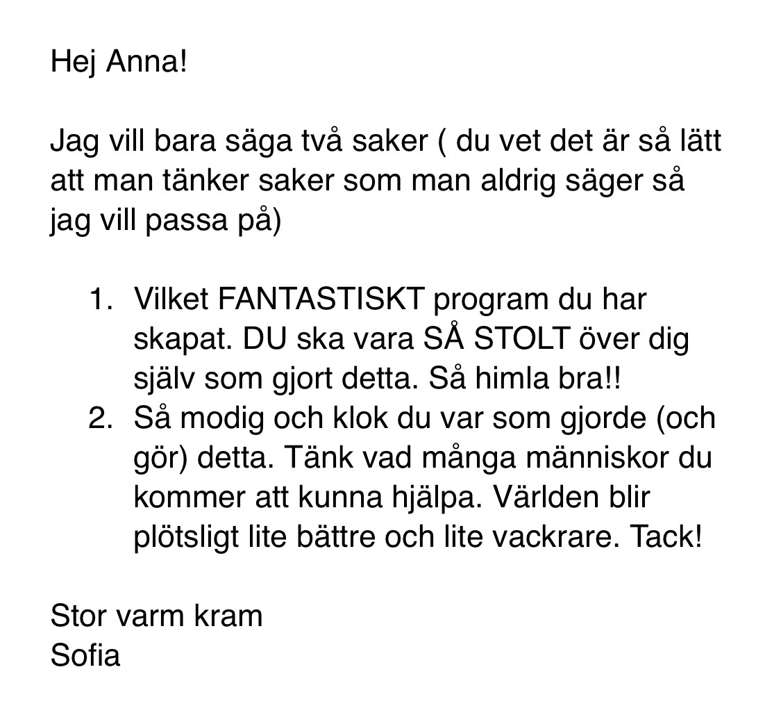 Den andra anledningen är att jag vill visa dig att jag finns. En dag blir du kanske intresserad av att gå mina kurser blir anlita mig som coach. Då är det viktigt att du känner tillit och förtroende både till mig och min kunskap.